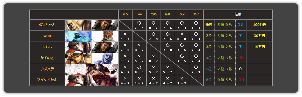 優勝:ボンちゃん 2位:wao 3位:ももち